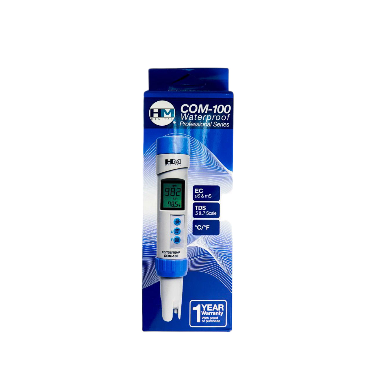 COM-100: Medidor EC/TDS impermeable serie profesional. El COM-100 es un medidor de EC/TDS/T° de nivel profesional ideal para todas las pruebas de calidad del agua, hidroponía, aplicaciones de purificación de agua, regulación de aguas residuales, acuicultura, plata coloidal, pruebas de laboratorio y científicas, piscinas y spas, pruebas de ecología, calderas y torres de enfriamiento, tratamiento de agua y más.