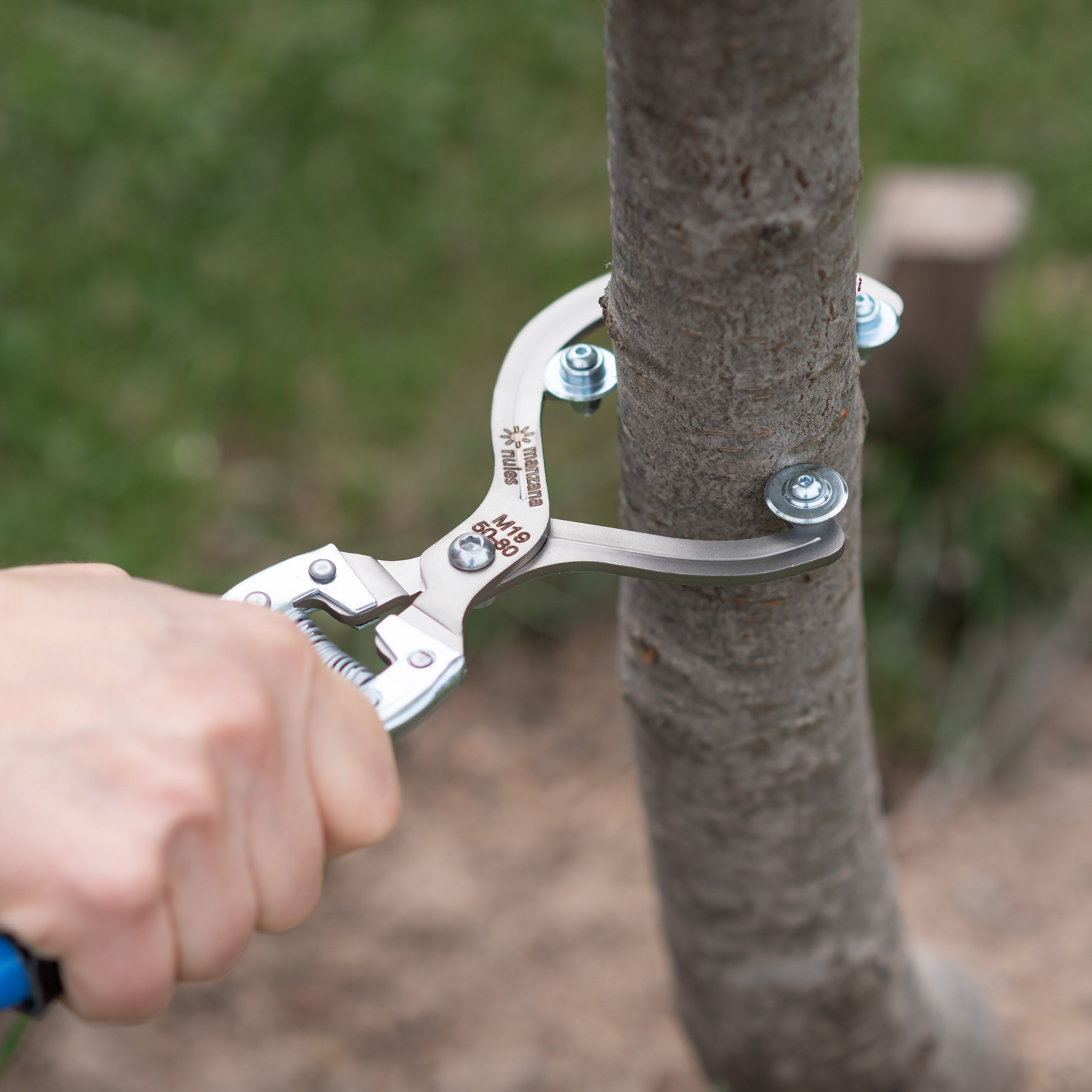 • A diferencia de los anilladores convencionales que realizan el corte mediante corte por arrastre, los discos rotativos cortan sin desgarrar la corteza del árbol. Cada disco realiza el anillado a un tercio de la rama, por lo que el operario solo tiene que realizar un giro de un tercio, reduciendo así el tiempo de trabajo. En los anilladores tradicionales el operario tiene que realizar un giro mínimo de la mitad de la rama.